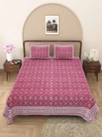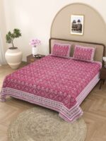 100% Pure Cotton Traditional Printed Bedsheet for Double Bed King Size Bedsheet with 2 Pillow Covers