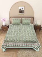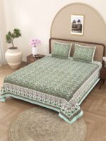 100% Pure Cotton Traditional Printed Bedsheet for Double Bed King Size Bedsheet with 2 Pillow Covers