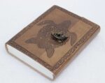 vintage handmade leather journal. Crafted with genuine leather, it radiates authenticity and charm, perfect for those who appreciate classic craftsmanship. The premium antique lock closure adds a touch of elegance and security, ensuring your thoughts and memories are safeguarded within its pages. Inside, you’ll discover 200 White handmade pages, providing ample space for your musings, sketches, and stories to unfold. Whether it’s for journaling, sketching, or planning, this versatile journal is a timeless companion for your creative endeavors. Treat yourself or a loved one to this exquisite piece, a celebration of tradition and creativity