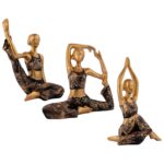 Suitable for home decor Yoga Posture Lady Statue Idol for Home Yoga Statue three pair admirable piece of gift (golden)